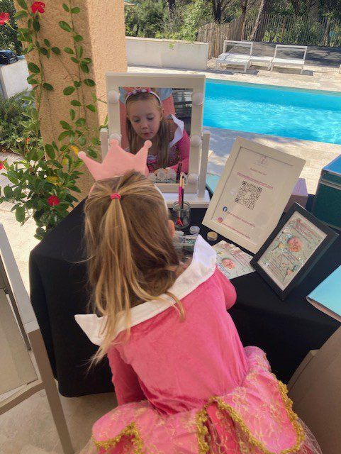 Je vous propose la préparation de la décoration de table avec les accessoires de fête (1h30 avant l’arrivée des enfants), selon le thème et les couleurs de votre choix, ainsi qu’une séance de maquillage pailleté adaptée aux plus petits.
